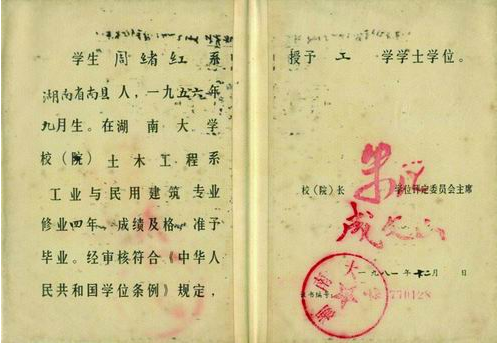 由于大家觉得上大学机会来之不易,都很珍惜时光,学习非常刻苦,学校也为同学们创造了良好的学习环境,所以学习上基本没有什么困难。在学习上,同学们都互相攀比、互相激励、无形中也互相约束。我几乎很少看电影,周末也不怎么休息。晚上寝室熄灯后,还经常打手电在被子里学习看书,或到路灯下看书,老师布置的作业全做,老师没有布置的也做,还要找参考书、习题集做,一个理论力学题采用多种方法求解,个别题甚至做到了一题八解。作业本工工整整,每个图都用尺子画,做过的作业本摞起来一大叠。现在想起来,要是学生都是这样的话,老师无法有时间来批改这么多作业。我每天早起上岳麓山读英文和锻炼,连英文单词在哪一页出现我都记得住,毕业三十五年后同学聚会时还谈起这事。