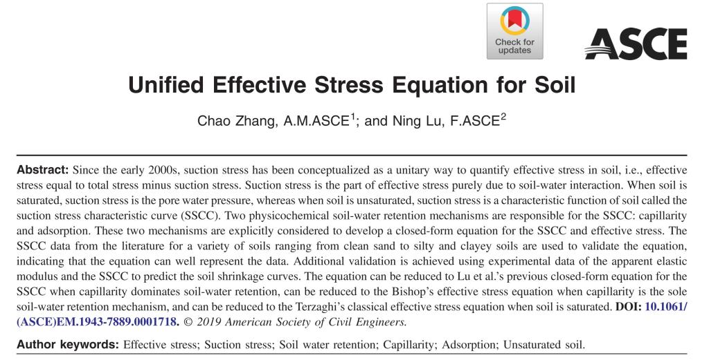 张超教授荣获美国土木工程学会(ASCE)学术论文最高奖“诺曼奖章”(Norman Medal),以表彰其论文成果《Unified Effective Stress Equation for Soil》在工程科学领域的杰出贡献。获奖成果由av漫画