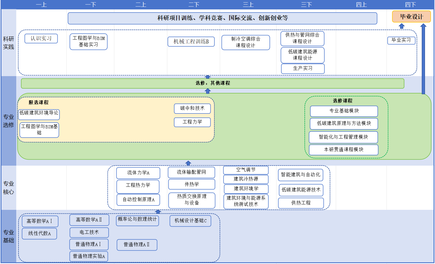 3. 工程能力:具备创新能力、跨学科综合能力、高效表达沟通能力、国际合作能力、计算思维能力,能够将知识和能力应用于解决建筑环境与能源应用工程中的复杂问题。 |