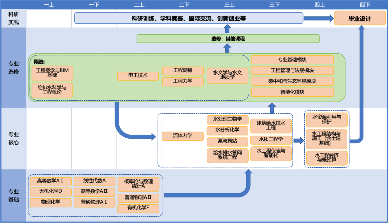 2. 学科知识:具备扎实的数学及自然科学的基础知识,掌握宽厚的给排水工程设计、建造、运维与管理等专业知识,具备适应给排水工程领域人工智能发展和应用的相关基础知识储备。 |