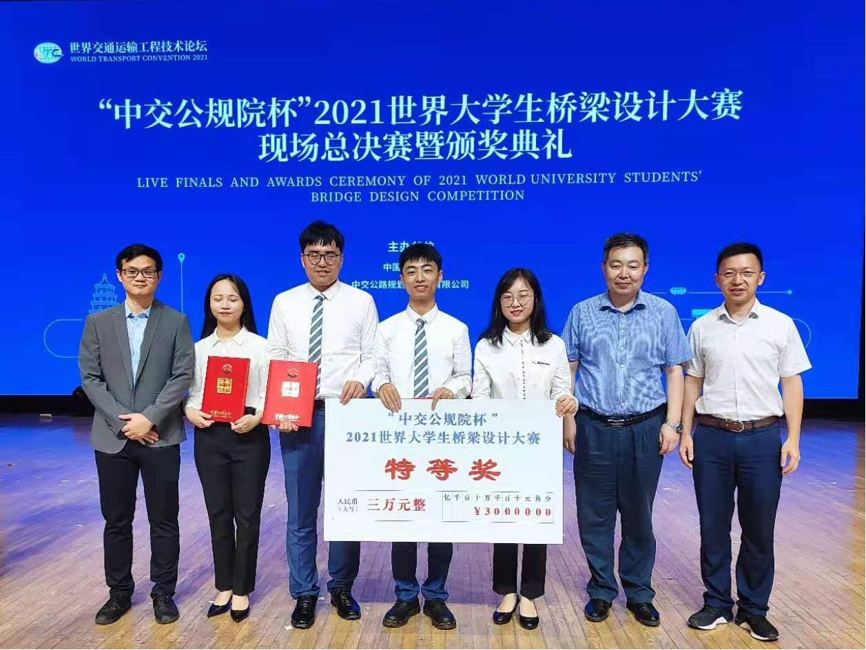 “中交公规院杯”2021世界大学生桥梁设计大赛是中国公路学会与中交公路规划设计院有限公司共同主办的国际赛事,自2017年创办至今已连续举办了四届。大赛旨在引导高等学校培养大学生的创新设计意识、综合设计能力与团队协作精神;加强学生动手能力的培养和工程实践的训练,鼓励学生针对实际需求,通过创新思维进行桥梁设计;吸引、鼓励广大学生踊跃参加课外科技实践活动,为优秀人才脱颖而出创造条件;发现并培养更多的桥梁设计专业人才,为推动世界桥梁建设进步提供更多人才储备。作为2021世界交通运输大会的重点活动之一,经过院校推荐,评审会初审,评审会终审等过程,经过专家学者的严格评审,大赛组委会从57所世界高校提交的200余件作品中遴选10项作品进入终审决赛环节。