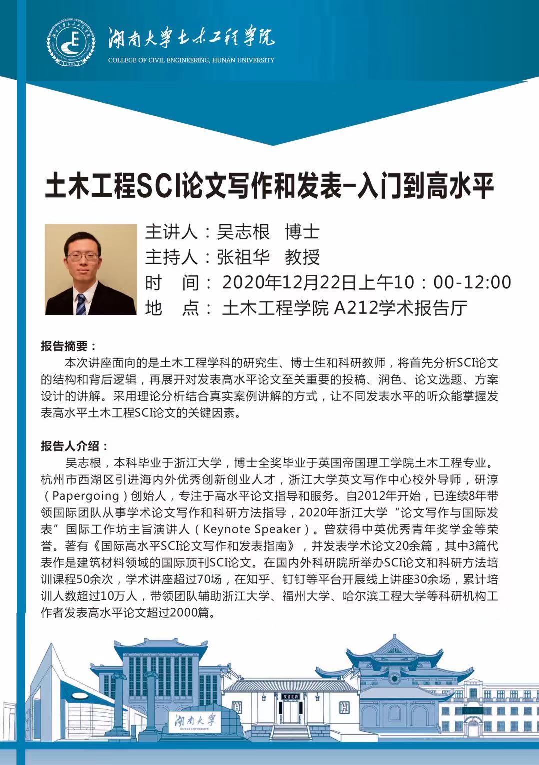 吴志根:土木工程SCI论文写作和发表---入门到高水平