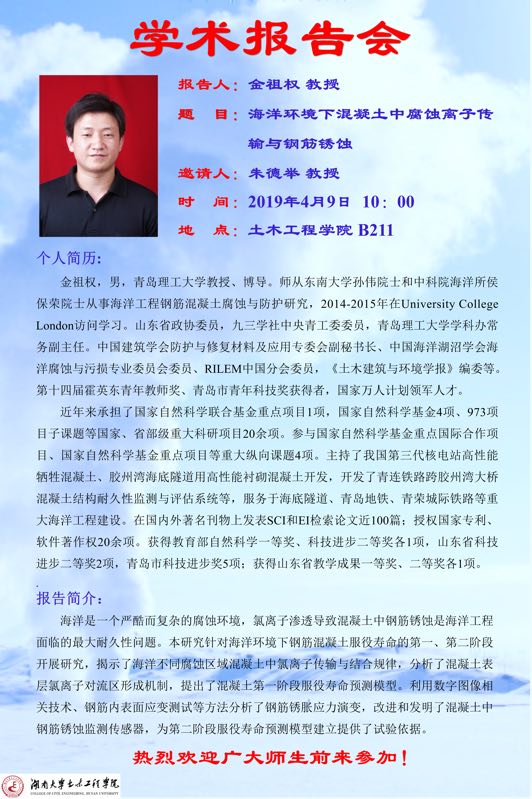 金祖权:海洋环境下混凝土中腐蚀离子传输与钢筋锈蚀
