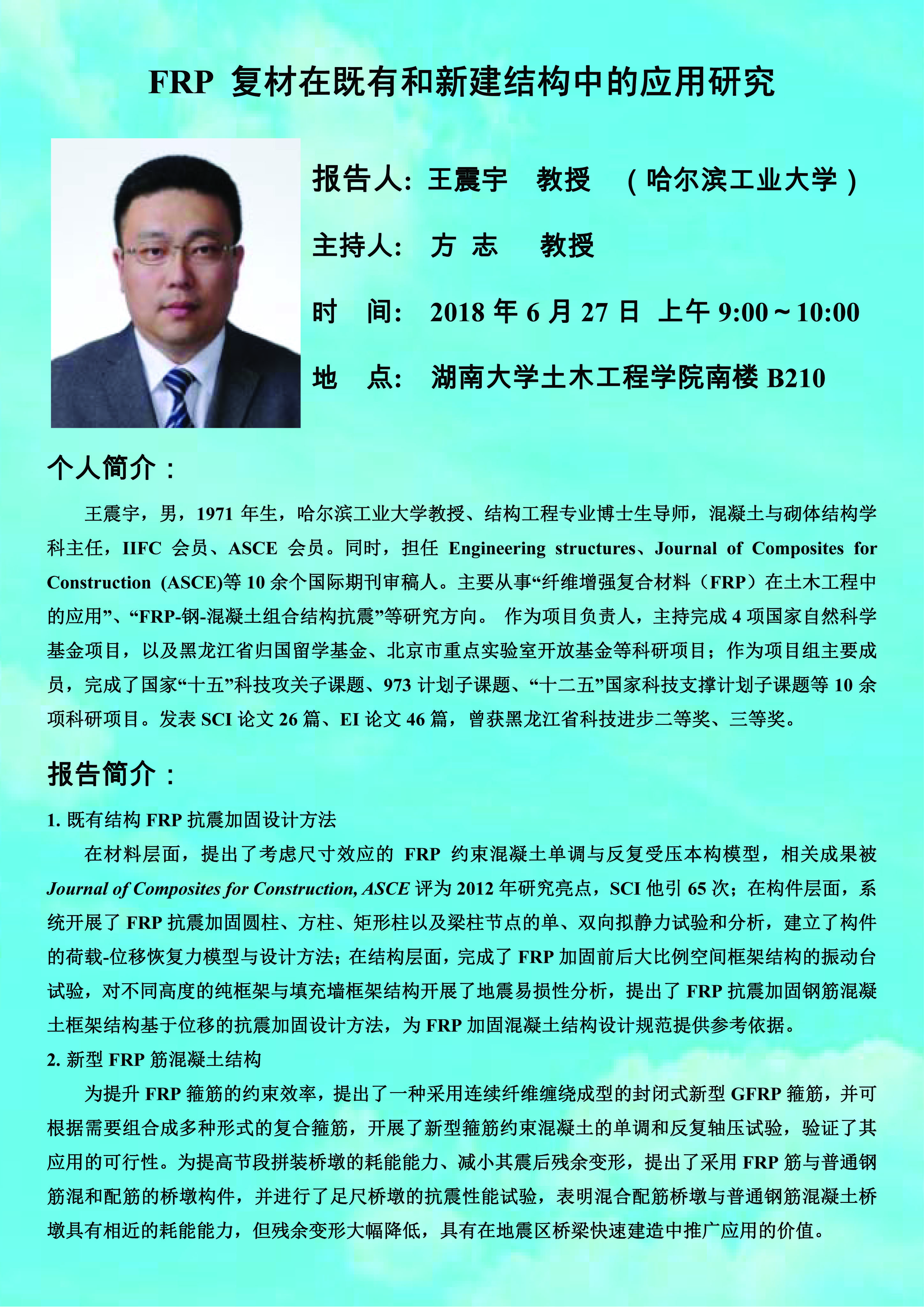 王震宇:FRP复材在既有和新建结构中的应用研究