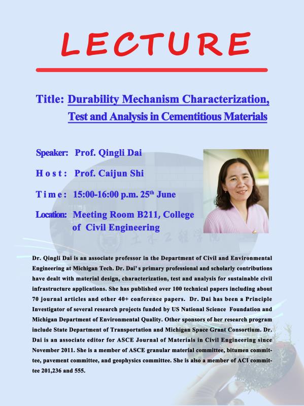 代青利:Durability Mechanism Characterization, Test and Analysis in Cementitious Materials