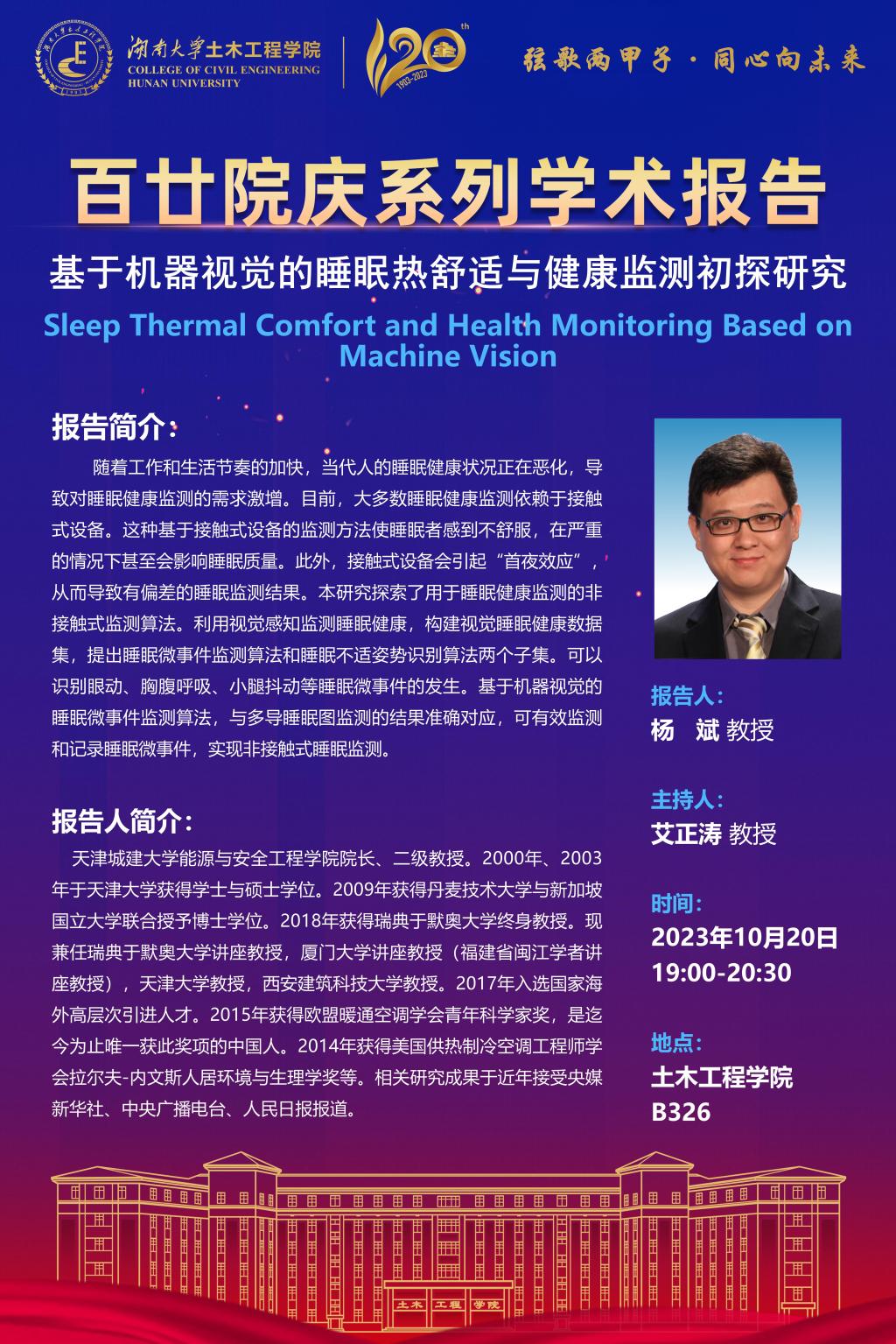百廿院庆 学术活动|杨斌:基于机器视觉的睡眠热舒适与健康监测初探研究