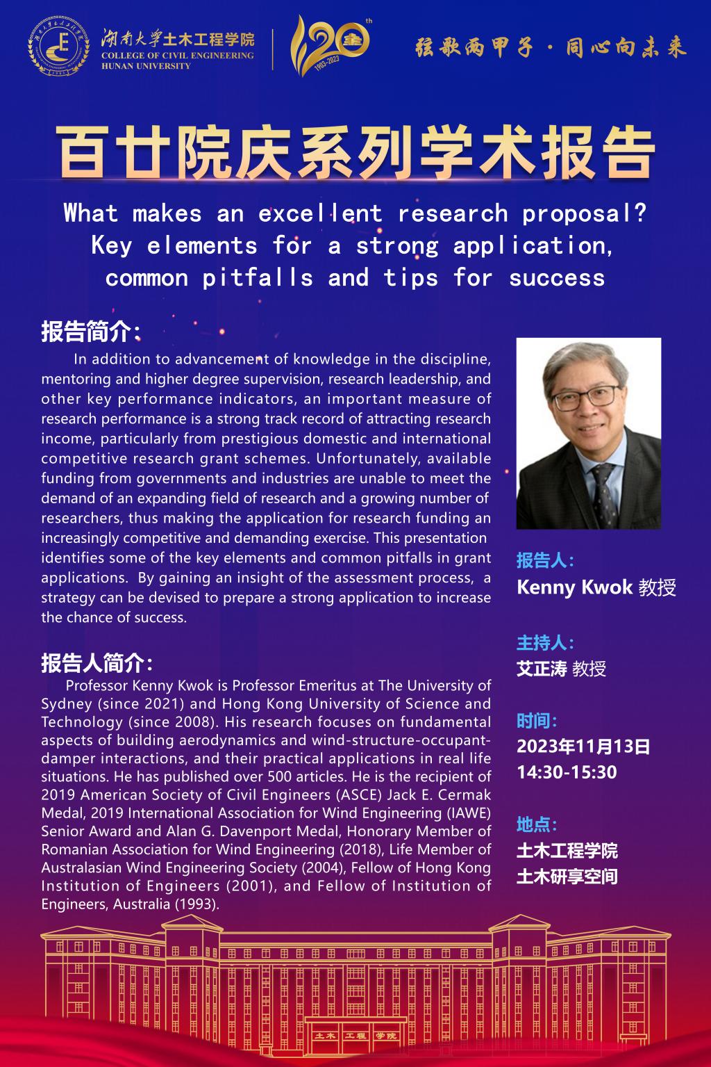 百廿院庆 学术活动|Kenny Kwok :What makes an excellent research proposal? Key elements for a strong application, common pitfalls and tips for success