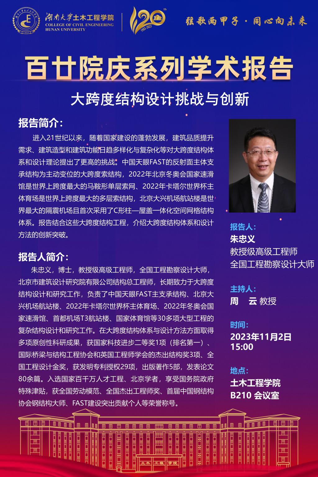 百廿院庆 学术活动|朱忠义:大跨度结构设计挑战与创新