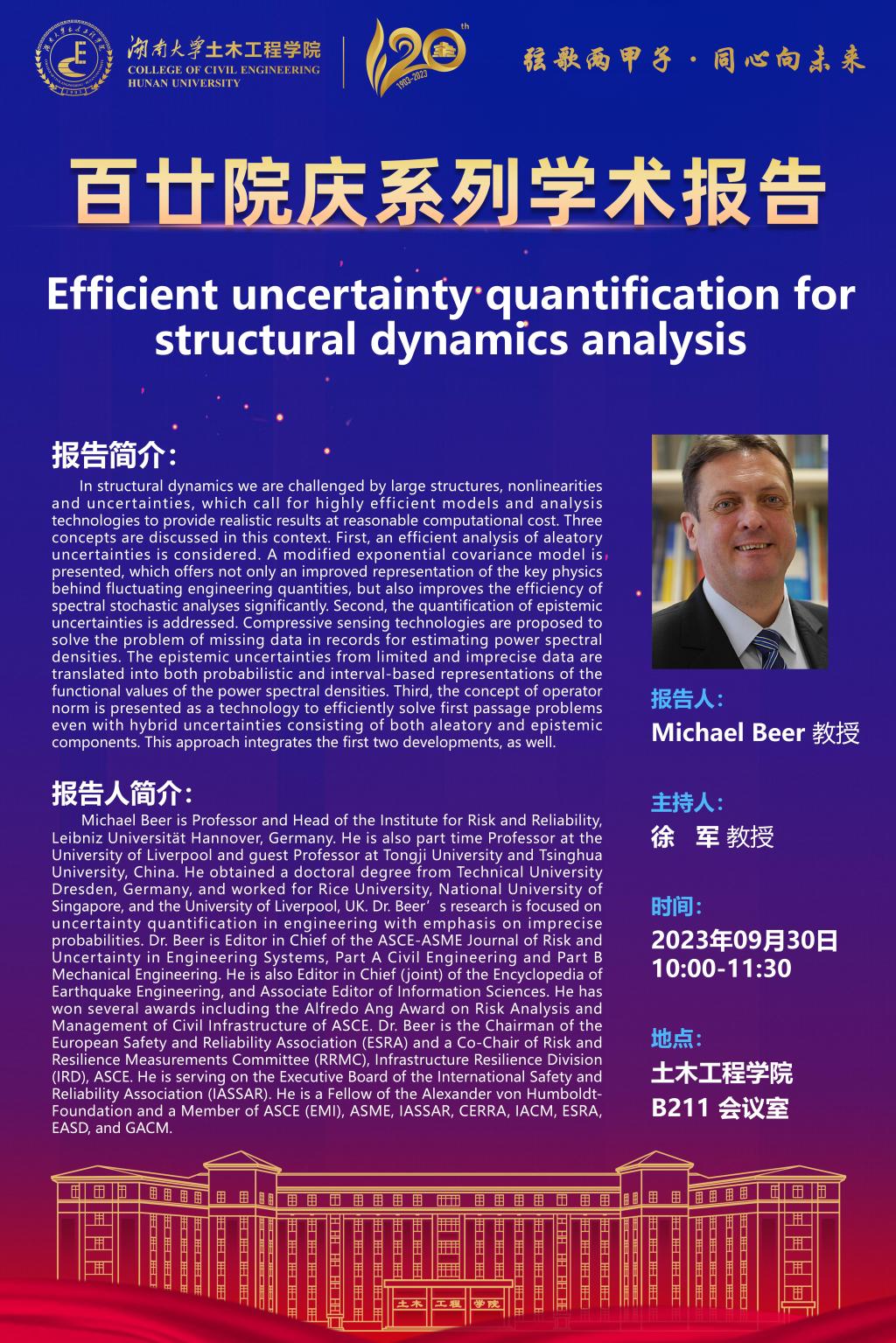 百廿院庆 学术活动|Michael Beer:Efficient uncertainty quantification for structural dynamics analysis