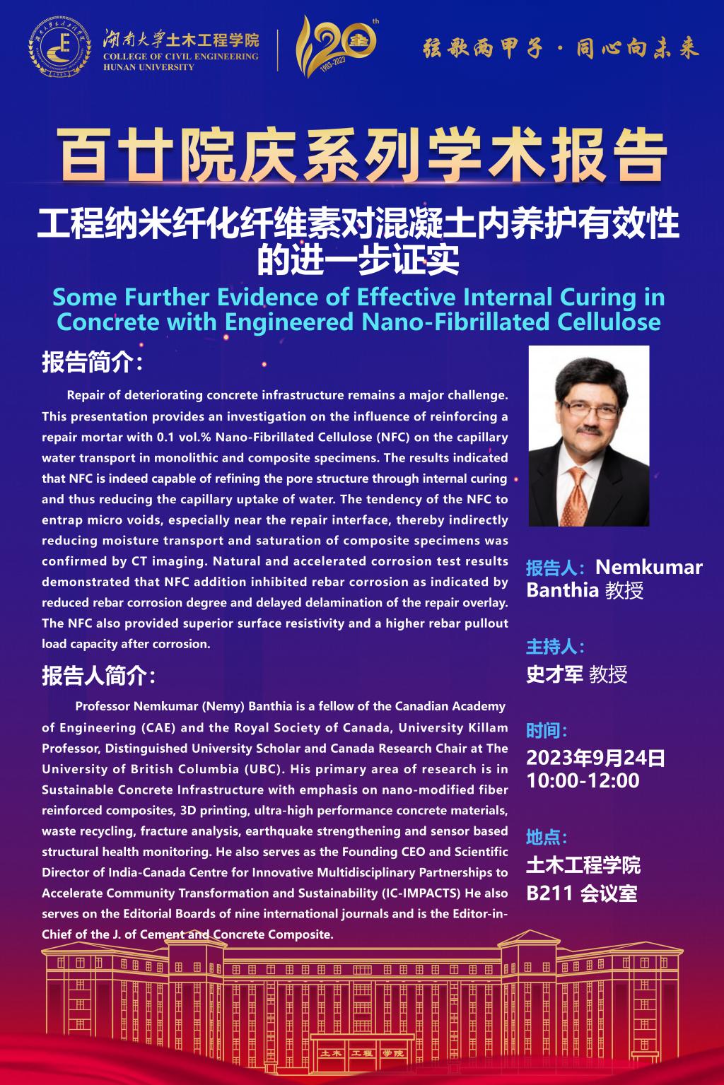百廿院庆 学术活动|Nemkumar Banthia:Some Further Evidence of Effective Internal Curing in Concrete with Engineered Nano-Fibrillated Cellulose