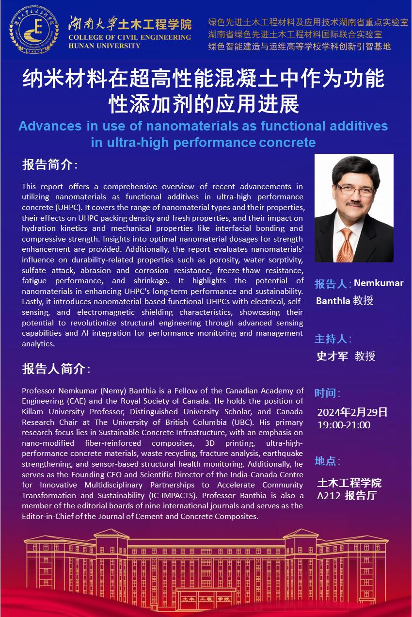 Nemkumar Banthia:纳米材料在超高性能混凝土中作为功能性添加剂的应用进展
