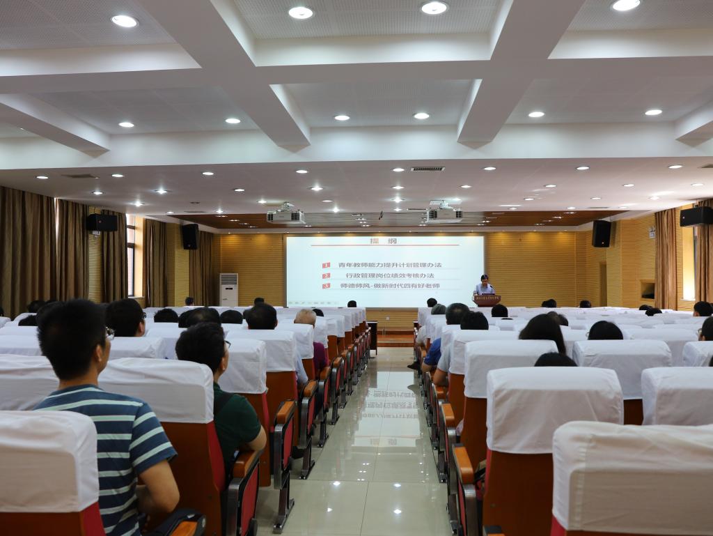 周石庆对青年教师能力提升计划管理办法、行政管理岗位绩效考核办法和新时代教师思想政治和师德师风建设的总体要求进行了政策宣讲。