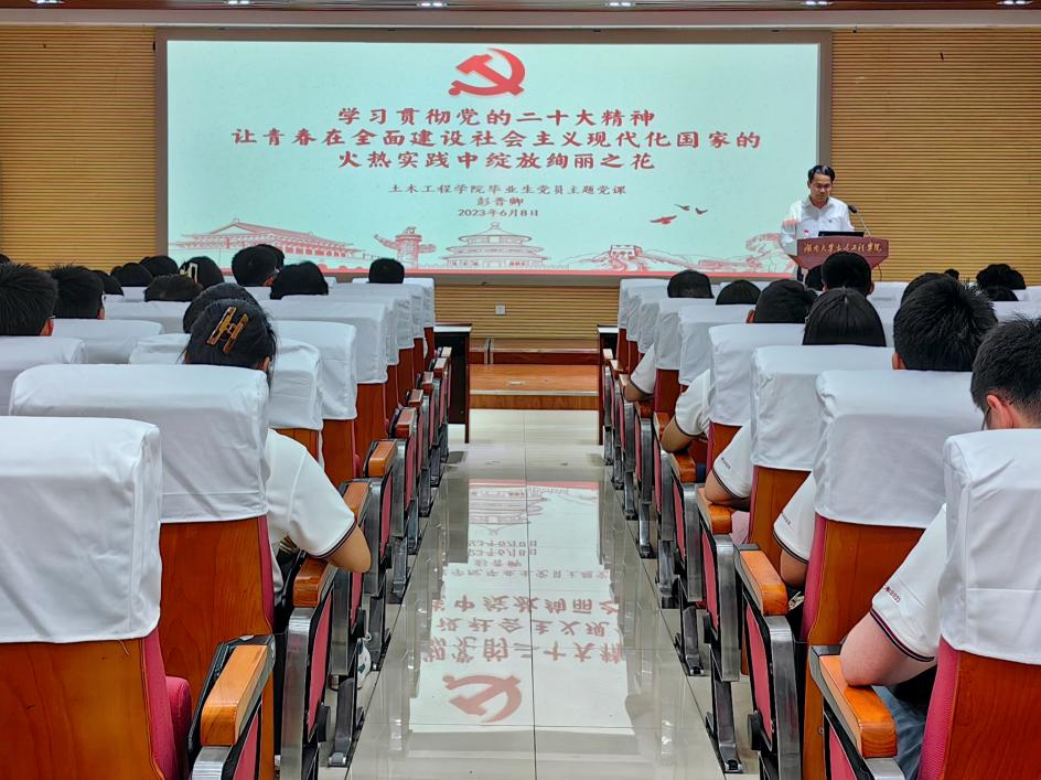 6月8日,学院开展2023届毕业生党员主题党课学习,学院党委书记彭晋卿为2023届全体毕业生党员讲授主题党课。