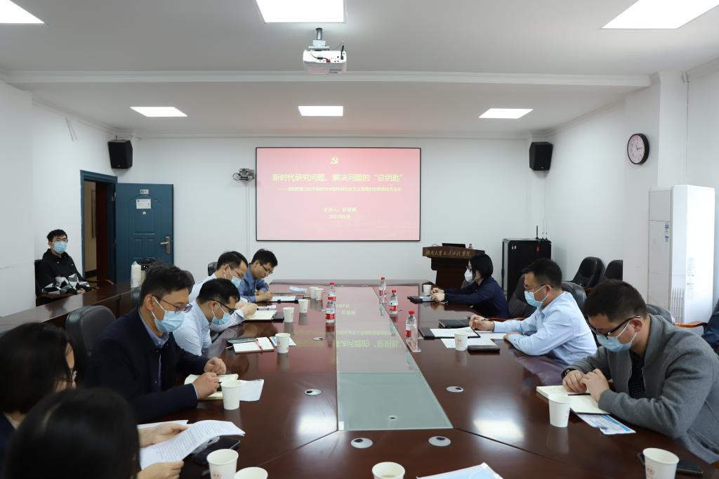彭晋卿以《新时代研究问题、解决问题的“总钥匙”》为主题讲授党课,围绕“六个必须坚持”主线,全面系统地对习近平新时代中国特色社会主义思想的科学体系、精神实质、内涵要义和实践要求进行了深入解读。在场师生党支部书记代表作交流发言。