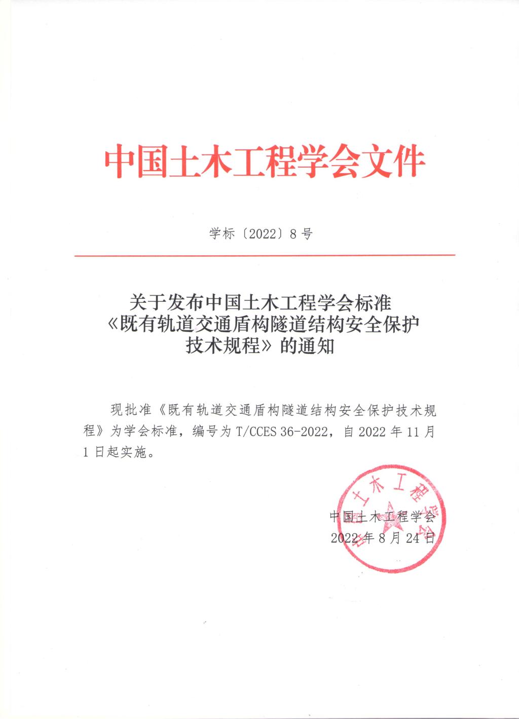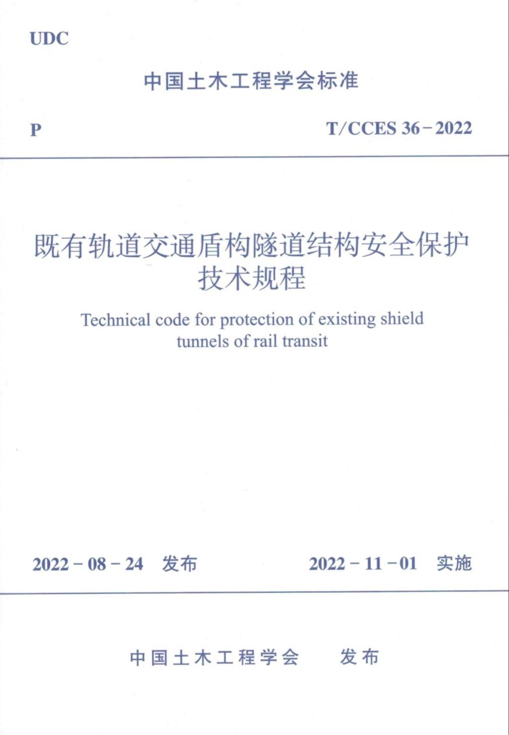 和深圳大学作为主编单位,会同同济大学、广州地铁设计研究院股份有限公司、铁科院(深圳)研究设计院有限公司、中铁二院华东勘察设计有限责任公司、浙江大学、中国建筑第五工程局有限公司、武汉市市政建设集团隧道工程公司、长沙市轨道交通集团有限公司、中国电建集团华东勘测设计研究院、深圳市地铁集团有限公司、中电建铁路建设投资集团有限公司、中铁第四勘察设计院集团有限公司、上海市隧道工程轨道交通设计研究院以及深圳市市政设计研究院有限公司编制的中国土木工程学会标准《既有轨道交通盾构隧道结构安全保护技术规程》(T/CCES36-2022)(以下简称《规程》)正式颁布,并于2022年11月1日实施。