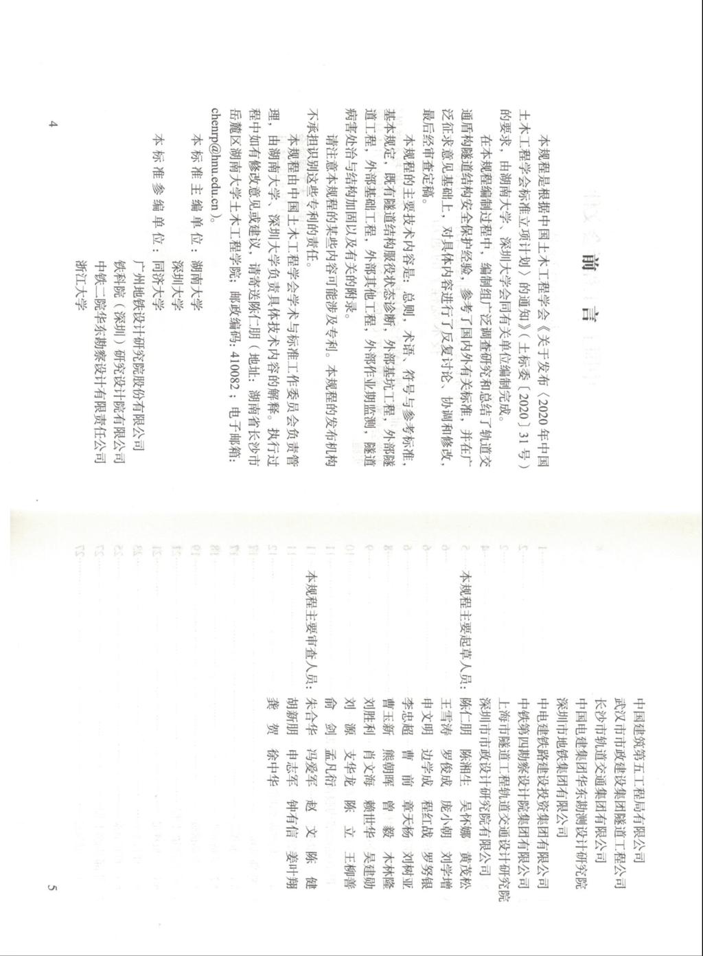 自2019年3月由中国土木工程学会批准《规程》研编计划以来编制组广泛调查研究、总结了轨道交通盾构隧道结构安全保护经验,参考了国内外有关标准,对《规程》中的有关内容开展了大量的理论和试验研究,并在广泛征求意见基础上,对具体内容进行了反复讨论、协调和修改,在中国土木工程学会、审查委员会以及行业领域专家的共同支持和帮助下,圆满完成了《规程》的编制工作。
