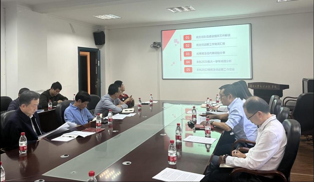 会议解读了学校、学院本科生班主任队伍建设以及管理考核相关文件要求,总结了近期班主任工作开展情况,进一步明确了班主任的日常工作要求。优秀班主任代表黎莉老师围绕班干部团队管理、关心关爱学生、学业指导与帮扶等方面分享了工作经验,并提出了切实有效的工作建议。