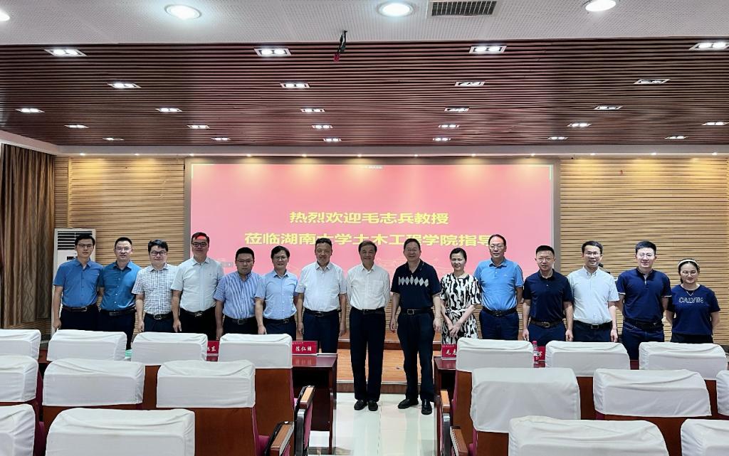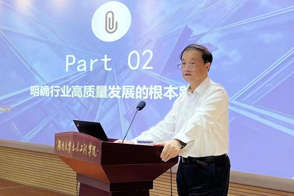 兼职教授毛志兵作了题为《三造融合四化协同推动行业高质量发展》的专题报告。中国工程院院士陈政清、校长助理陈仁朋、史才军教授、邵旭东教授、方志教授、学院党政班子成员等出席会议。会议由院长邓露主持。