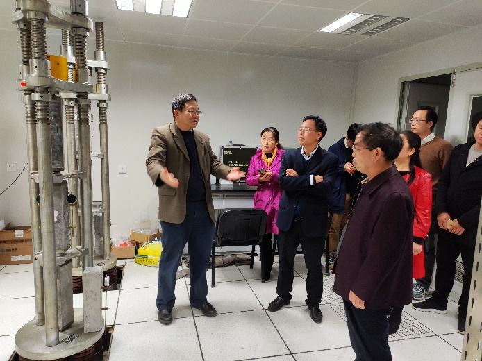 会上,国际合作基地主任史才军教授从基地的宗旨、运行制度、人员组成、科学研究及国际合作等方面,详细介绍了基地建设三年以来的工作成果,并带领专家进行了实地考察。基地建设以来,在绿色高性能土木工程材料组成设计、土木工程用复合材料的设计与调控、废弃物资源化和再生循环利用和基于绿色高性能材料的土木工程结构这四个方向上进行基础理论研究,并将研究成果进行工程应用。基地成员新增国家及省部级项目20余项,项目总经费3400万,发表论文60余篇,申请及授权专利30余项。基地科研场地新建规模达到了约1000平方米,仪器的使用与维护情况良好。在科研创新、实验室建设与管理、人才培养、学术交流等方面均顺利甚至超额完成基地建设任务。专家组与基地工作人员进行了深入交流,对基地在科研创新、人才培养、国际合作方面的成效及基地运行管理经验给予了高度肯定,一致同意“湖南省绿色先进土木工程材料国际合作基地”项目通过验收。