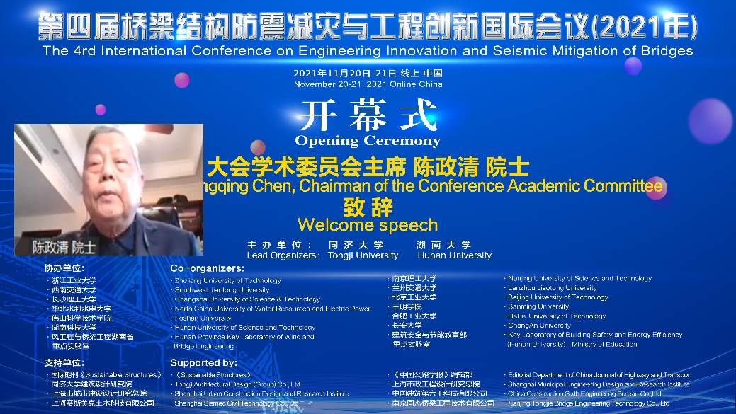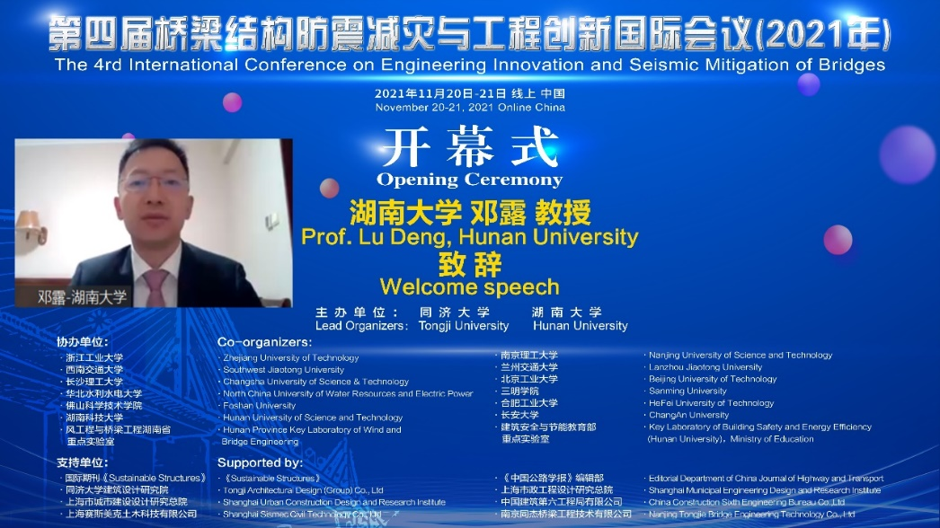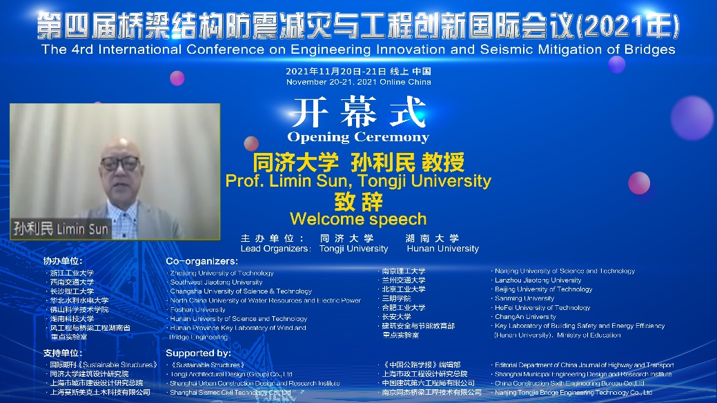 11月20日-21日,第四届桥梁工程防震减灾与工程创新国际会议(The 4th International Conference on Engineering Innovation and Seismic Mitigation of Bridges)”在线(Zoom会议平台)顺利召开。随着近期国内局地疫情再现,国外多数国家形势依旧严峻的形势下,本次会议仍采用线上视频形式举行,积极探索这种新型的线上大型国际会议组织形式的改进和创新。