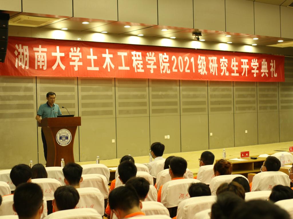 学院党委书记彭嘉芬向全体研究生新生表示了热烈欢迎,同时,从坚定理想信念、传承学术精神、坚守学术思想、不惧艰难险阻四个角度对同学们提出了殷切期许,希望同学们能够争做新时代土木人。