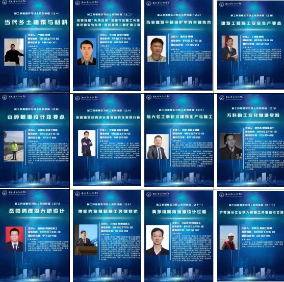 土木类专业的暑期生产实习是教学与生产实际相结合的重要实践性教学环节,生产实习以培养学生观察问题、解决问题和向生产实际学习的能力和方法为目标,是合格工程师培养环节中的重要组成部分。为减小7月底突发疫情的影响,学院统筹安排土木工程专业(建筑工程方向、桥梁工程方向、道路工程方向、岩土工程方向)和工程管理专业开展新工科“云课堂”线上专题讲座。