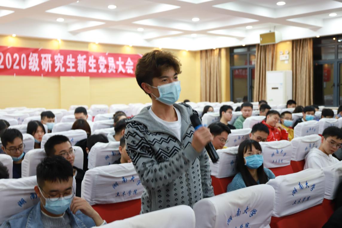 2020级新生党员大会在学院A212报告厅召开。学院党委书记彭嘉芬老师,党委副书记秦鹏老师,学工办主任向杰老师,各年级辅导员,2020级全体研究生党员,本科生党员、研究生团总支代表参加了此次会议。会议由党委副书记秦鹏老师主持。
