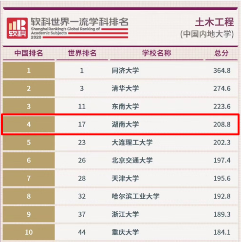 土木工程学科在“软科世界一流学科排名”中稳步提升,由2017年国内排名第8位、国际排名第42位上升到2020年国内排名第4位、国际排名第17位,学科国内外影响力显著提升。