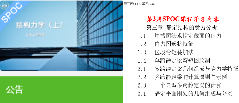 结构力学课程要跨越两个学期,打好基础很重要。疫情期间周老师利用学院已经上线的结构力学慕课,建立同步SPOC。每周发布教学公告,鼓励同学们利用业余时间完成预习、复习任务,自己做好答疑工作。