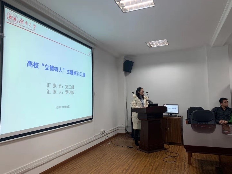 “立德树人”主题研讨》和《高校“立德树人”主题研讨汇报》的PPT汇报,施周院长和黄立葵副院长参加了讨论会并进行了总结,学院党委书记邓露对此次活动给与了充分肯定,他说:“教书育人,是每一个大学教师的本职工作。每位老师做好这项工作,我们将影响千百位同学。大家一起做好这项工作,我们将影响一代人,影响整个中国,影响全人类。”