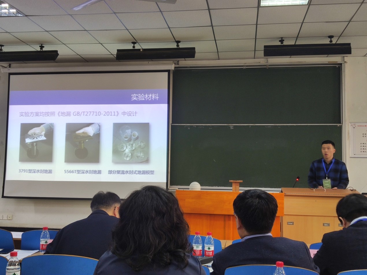 一队是施周教授和周石庆副教授指导的《一种新型弧板螺旋水封式地漏》,由杨文建担任队长,项目成员包括麻望池、李辰星、黄钰婧、姚明晨。团队结合“模拟+实验”的方法优化了结构参数,设计了一种符合规范要求的自带强效水封、且过流能力和自清能力强的弧板聚流水封式地漏。队伍经过初赛与决赛两轮精彩的答辩,获得评审专家的一致好评,获得团体一等奖。