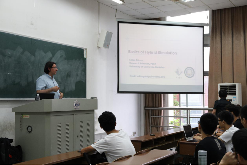 本次暑期课程的开场仪式由邓露书记主持并介绍,土木院广大师生出席了开场式并积极报名参加了暑期课程。在为期一周的暑期课程中,Gunay博士深入浅出地讲解了他在地震工程中混合仿真技术中的最新研究成果;介绍了太平洋地震研究中心的研究宗旨和目标;对比了中国和美国在工程抗震研究方向和方法的差异性;指出了在混合模拟仿真时应注意的问题及应对措施;引领学生学习了混合仿真的基础知识和软件应用。他的课程引起了在场师生的极大兴趣,每节课程结束后,Gunay博士都会与出席的师生开展热烈的学术讨论与交流,对于师生提出的问题,Gunay博士都会耐心地给予解答。