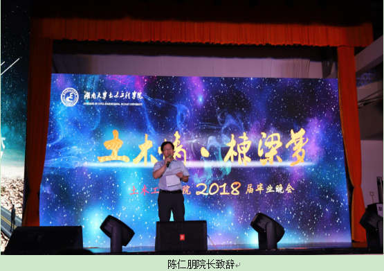 晚会在一段节奏轻快的开场舞蹈后正式开始。首先,陈仁朋院长致辞,他希望同学们做一个追求理想,勇于克服困难的湖大土木学子,并祝愿大家前程似锦。随后,毕业生代表将手里承载着全年级459名同学对老师的祝福与感谢的鲜花献给四年来为大家付出辛苦的老师们,老师们起身迎花致谢。