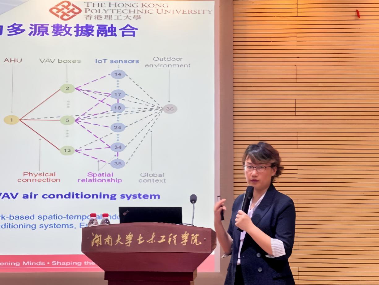 肖赋介绍了在工业4.0背景下,研究团队运用物联网、数字孪生和人工智能等关键技术在建筑能源管理方面的研究进展、应用实例以及未来发展面临的机遇与挑战。她表示,智慧建筑能源管理是一个典型的跨学科、跨行业的研究领域,推动科学研究与工程应用的结合发展,进一步实现建筑行业的数字化、智慧化、低碳化和可持续发展。