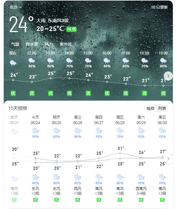 这段时间,强对流天气将成为“常客”,未来一段时间依旧降雨频繁,自6月20日20:00至21日20:00,湖南省暴雨蓝色预警、地质灾害气象风险预警、山洪灾害风险预警三预警齐发,需警惕降雨叠加以及持续降雨或局地强降雨可能引发的山洪、地质灾害、中小河流洪水、城乡积涝等灾害。
