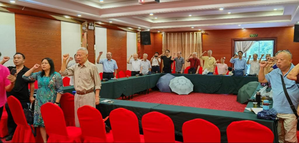 离退休第一、第二党支部“学党史、悟思想、办实事、开新局”专题组织生活会。首先全体起立,重温入党誓词,在党旗下庄严宣誓。