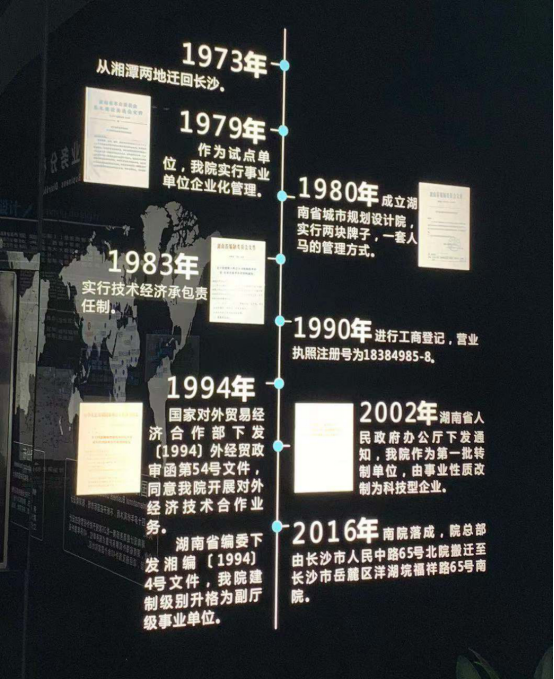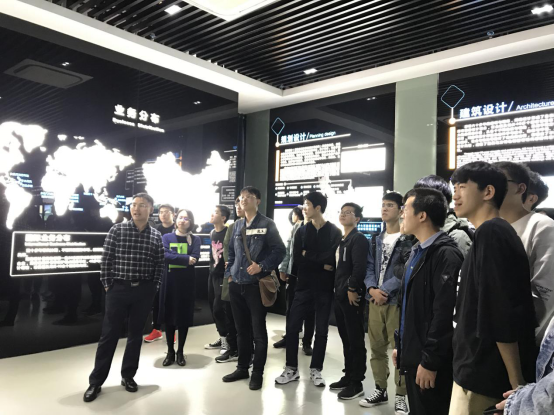 陈圆学姐徐舜开学长首先带同学们来到了位于省院办公楼一楼的展览厅,给同学们介绍了湖南省院的历史沿革目前的主要业务分布、各板块业务及承接的重大项目简介以及企业所获得的荣誉