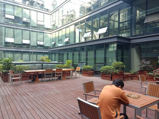 结束展览馆参观后,陈学姐带领同学们参观了省院内部的工作环境陈圆学姐向同学们介绍到,省院的办公楼是自己规划设计的,不仅设计理念非常先进,工作环境舒适优美,而且成本造价远低于市场价,令同学们倾叹不已。