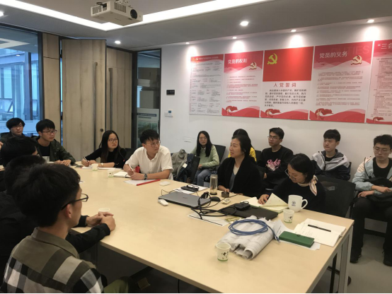 参观完公司后,便开始了本次活动的重头戏:前辈座谈交流会。在市政院党员活动室,张院长陈学姐徐学长和学长学姐和同学们进行了亲切交流。首先,徐学长给同学们介绍了市政院的党建工作,播放了省院的宣传片,介绍了市政院目前的业务范围和经营情况。
